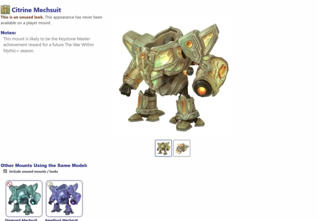 完成这个成就后,玩家将获得一项相当亮眼的奖励——光铸机甲。这是一款重新上色的坐骑,原型是《地心之战》第一赛季的大秘境大师成就奖励。