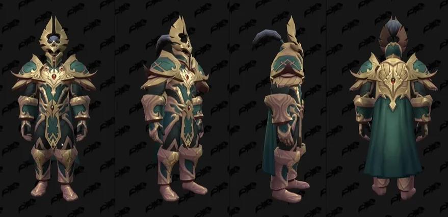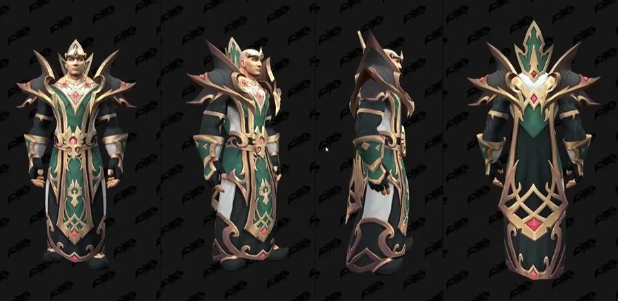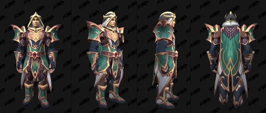 这些装备外观类似血精灵任务装束,按护甲类型分为布甲、皮甲、锁甲和板甲四种风格,整体偏绿金色调,质感典雅。虽然不算华丽,但喜欢血精灵风格的玩家应该会很喜欢。