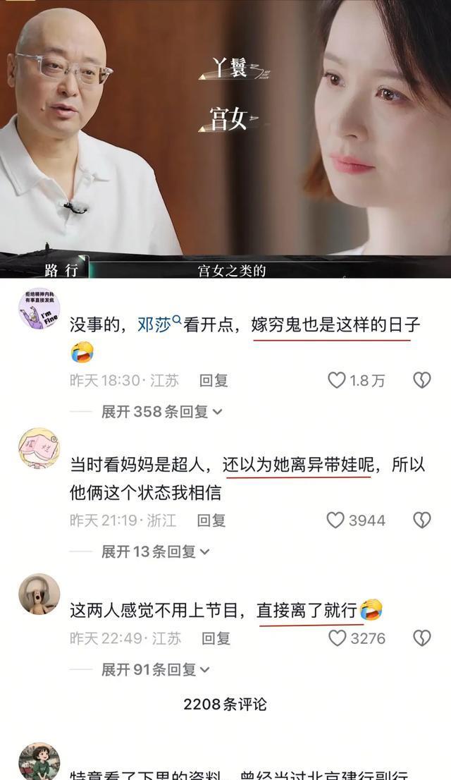58岁的路行是上市公司老总,40岁的邓莎是演过《美人心计》《知否知否应是绿肥红瘦》的女演员,两人差了18岁,当年奉子成婚,一起过了15年,如今却过成了半分居的“丧偶式”模样。路行是二婚,对邓莎的态度却满是不屑——邓莎说自己为了家庭放弃演艺事业,他倒觉得“生了个儿子,你还有什么不满足”;邓莎盼着他少忙工作多陪陪自己,他反倒吐槽“女人什么都想要”。在他眼里,邓莎的事业不过是“演演丫鬟宫女”,连她在婚姻里的付出都只算“生了儿子”。这样的相处哪里像夫妻?分明是老板对员工的审视,眼神里的轻蔑藏都藏不住,难道资本眼里的感情,真就只剩算计和贬低?