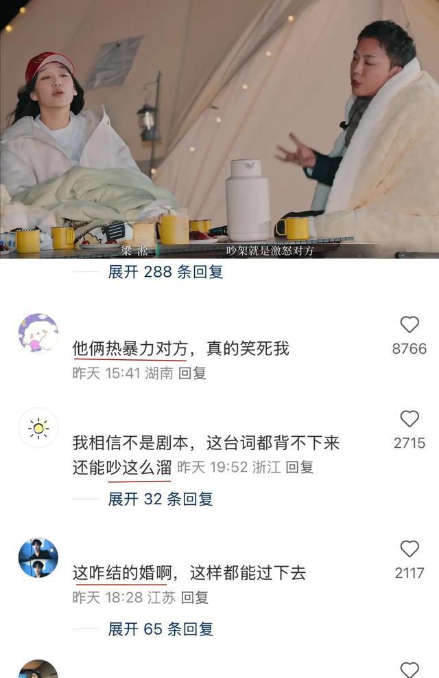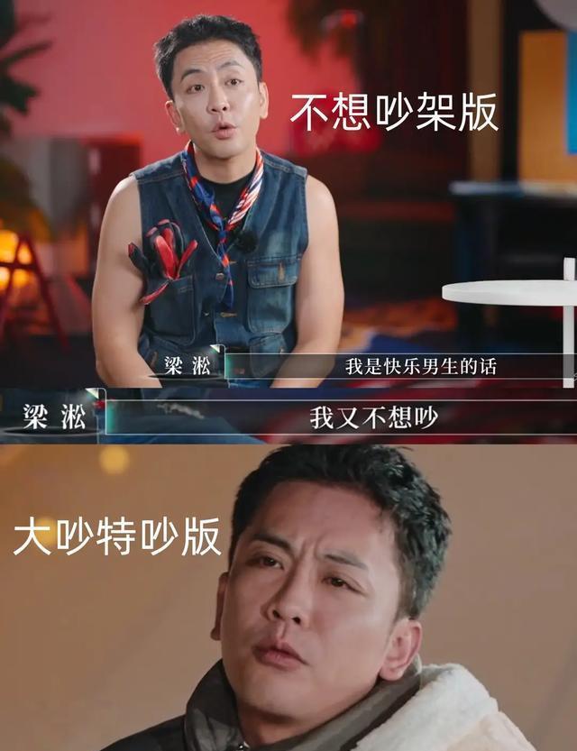 另一边的年轻夫妻更热闹,嘻哈歌手梁淞和何美延差11岁,结婚4年就生了3胎。别人夫妻是冷战,他俩是恨不得当面“火拼”——聊婚姻时平平淡淡,一吵架就眼睛发亮,中文夹着英文还能吵出押韵的节奏,语速快得像机关枪,攻击力拉满。谁能想到梁淞说自己是“快乐男生”,从小不跟人吵架?结果节目第一期还没播完,他就在聚餐时直接爆发,罢录离场让全场都傻了眼。这样的争吵哪像演的?要是背台词,哪能这么自然又火爆?
