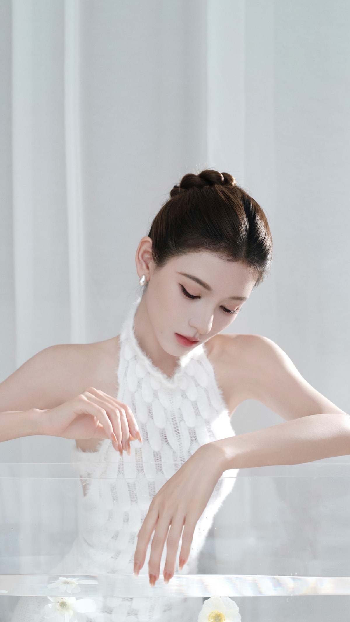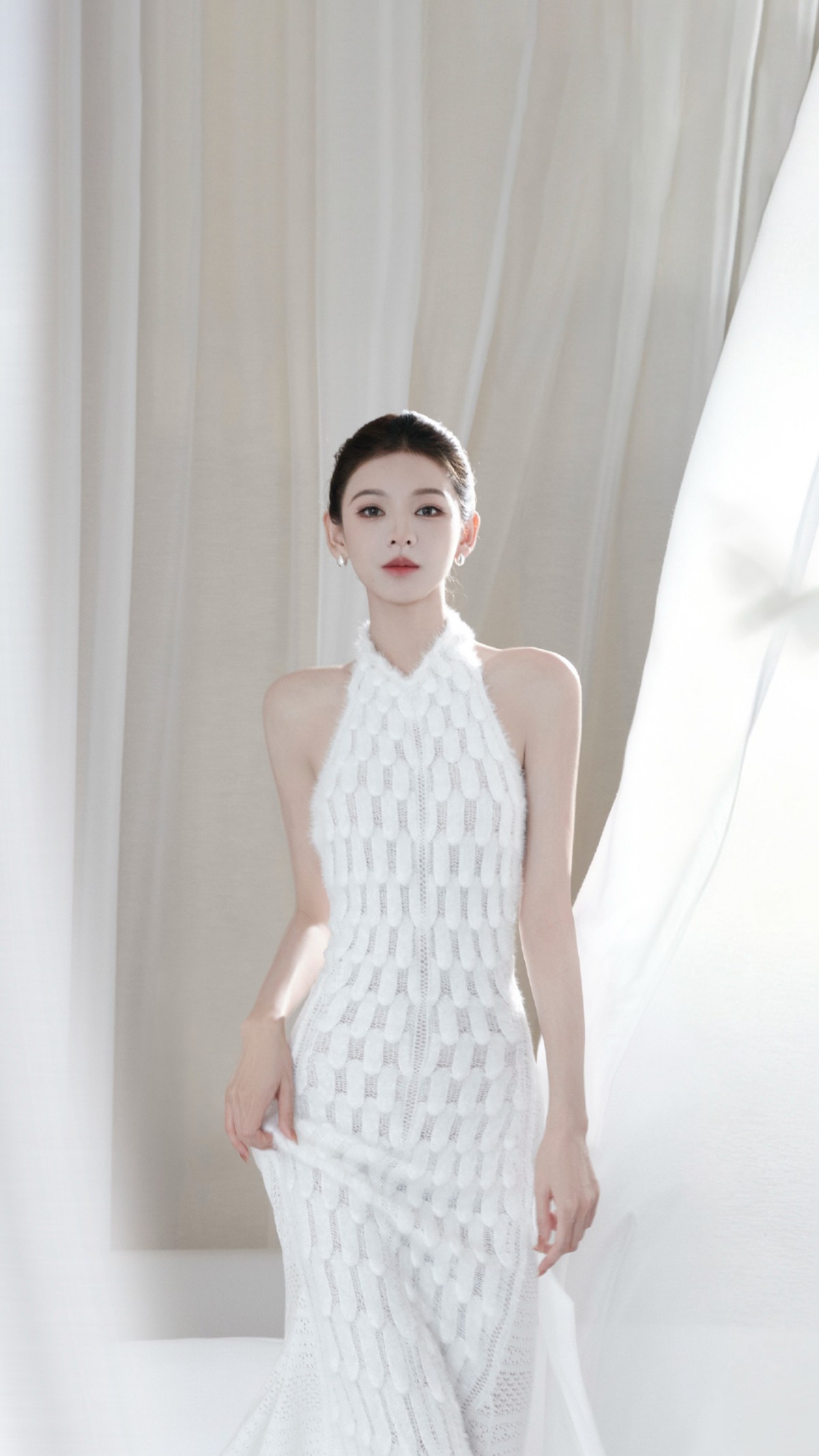 白色,向来是纯净与优雅的象征,而张予曦穿上它,更添了几分清冷气质。挂脖的设计巧妙地露出她精致的锁骨与优美的肩线,既性感又不失端庄。长裙贴合身形,勾勒出她曼妙的身姿,行走间,裙摆微微摆动,宛如一只自带滤镜的白蝴蝶在翩翩起舞,灵动而迷人。
