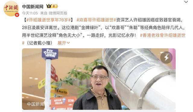 而他只想给外界留住自己在影视剧中塑造角色的快乐痕迹,有一位与许绍雄熟知的好友,曾在社交媒体发文,透露了许绍雄弥留之际在医院的细节。