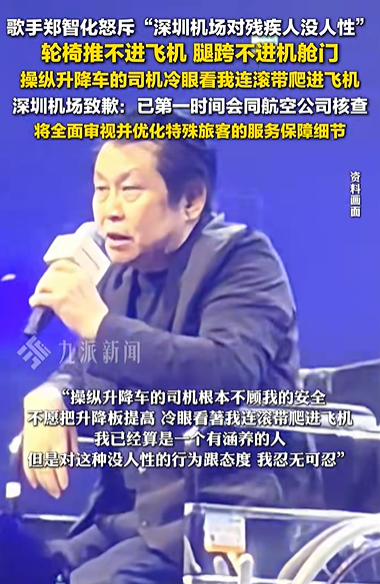 10月25日,歌手郑智化在社媒上发文吐槽深圳机场服务,称忍无可忍。