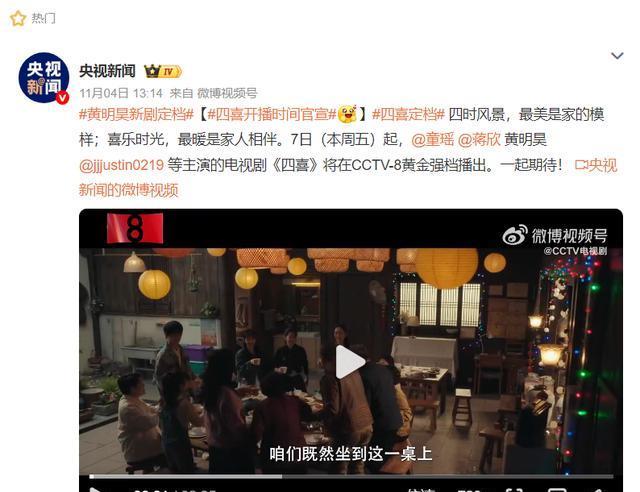 11月7号,国产剧最受欢迎的题材,家庭群像剧《四喜》也在赶来的路上,而且央视官方也亲自发文宣传,足以见得这部剧的“黑马”潜质。