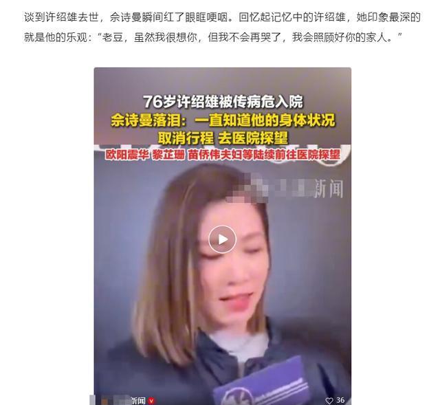 网上流传这样一种说法,在许绍雄离世时最放心不下的不是他的家人,而是他的干女儿佘诗曼。