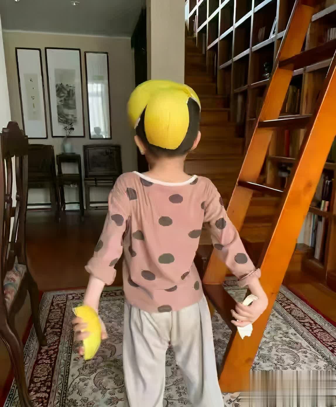 家中由于空间面积都非常大所以看上去很空但是经过设计还是比较温馨,照片中孩子与杨乐乐在一起的画面真的很是美好幸福,钢琴上有很多摆件与物品很是精致一看就用心挑选过整体看上去别有一番风味。