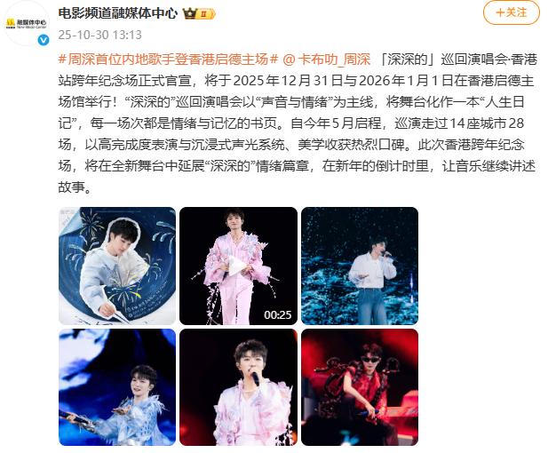 当天下午,周深在社交平台发布了最新一期演唱会将登上香港启德主场馆舞台。