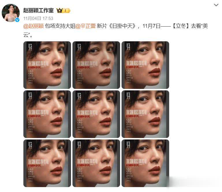 11月4号,《日掛中天》定档11月7日上映的前三天,赵丽颖工作室突然晒出包场的海报。