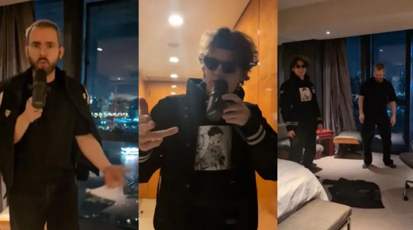 说到歌曲创作这方面,欧洲LEC联赛的制作团队也是不遑多让,他们差不多每年都会捣弄一首电竞主题的歌曲。而在KT打进了2025年全球总决赛的决赛后,他们本周发布了新歌《Getting Excited (For KT)》进行预热。演唱者是欧洲解说Drakos和Chronicler,欧洲主持人Laure担任旁白,歌曲采取了他们最擅长的说唱方式。由于这是临时起意的歌曲,加上解说们目前在中国进行现场解说,没有资源拍摄音乐MV,所以歌曲配套画面的拍摄场景是在酒店。
