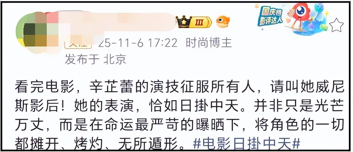 事实上,《日掛中天》在上映前确实已提前路演,郝蕾作为业内人士提前看过很正常。不过演员表现力如何,还是要靠观众的反应。那么第一波口碑如何呢?综合外界评价,似乎已经打脸郝蕾。