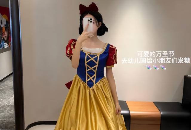 据了解,这是女儿幼儿园的万圣节活动之一。宣云不仅特意找来了公主装,还买了同款的假发套和蝴蝶结。