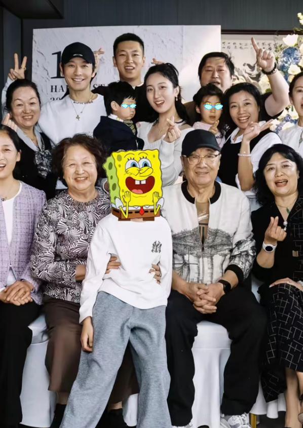 黄晓明一家4口参加生日宴,小海绵被奶奶搂在怀中,长腿溢出屏幕