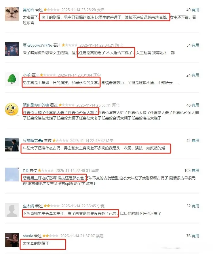 至于男女主的演技,任嘉伦的演技属于没进步,反而有点退步的状态,加上人设不出挑,任嘉伦演技被骂属于意料之中。