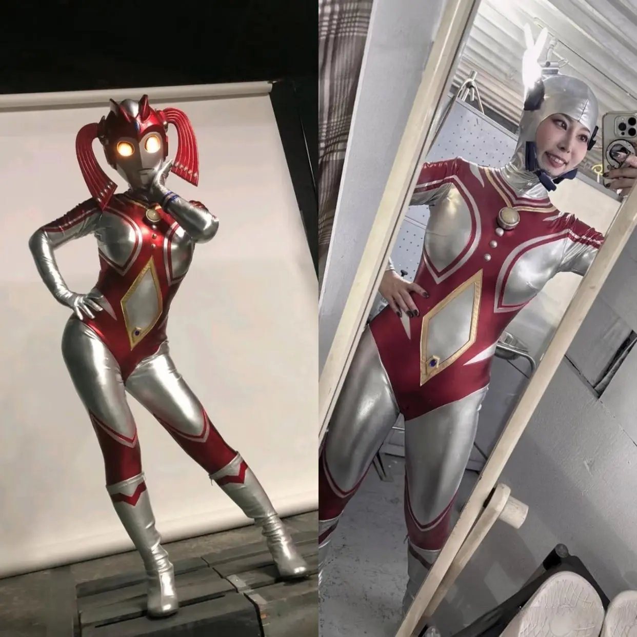 这位女奥的名字是维克特利娜,她的身躯是以银色为主的,脖子上是三条纹路,并且全身都拥有红色的纹路,胸前是典型的奥特计时器,是以蓝色为主的,并且也都是圆形。而且因为皮套材质的问题,维克特利娜的银色皮肤看起来反光,就会衬托的出这个女奥的皮肤也很光滑的既视感。