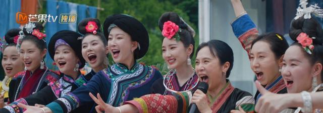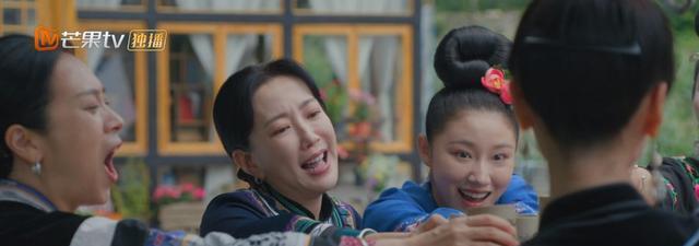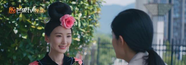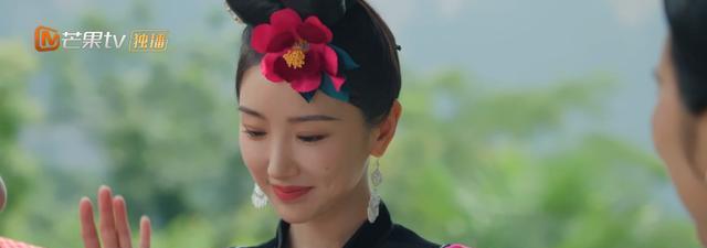 之后绣娘 们给她举办了庆功宴,这时候的衮月亮又换了另一套服饰,不仅衣服上绣得有花朵,就连头发也戴上了一朵大红花,花美人更美,当她低头似笑非笑的时候,那娇羞的模样,观众都给看呆了。