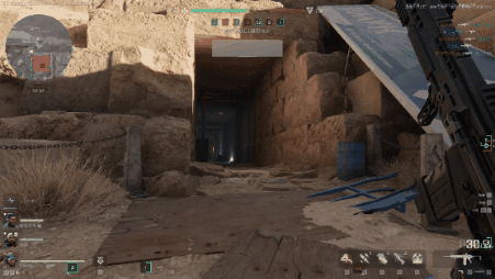 B区也是同样,表面上看似平地野区防守方端把狙爽抽,但区域两侧有着被沙丘遮挡的绕后通道,进攻方可以从这里直抵防守方高点,反过来高打低防守方。