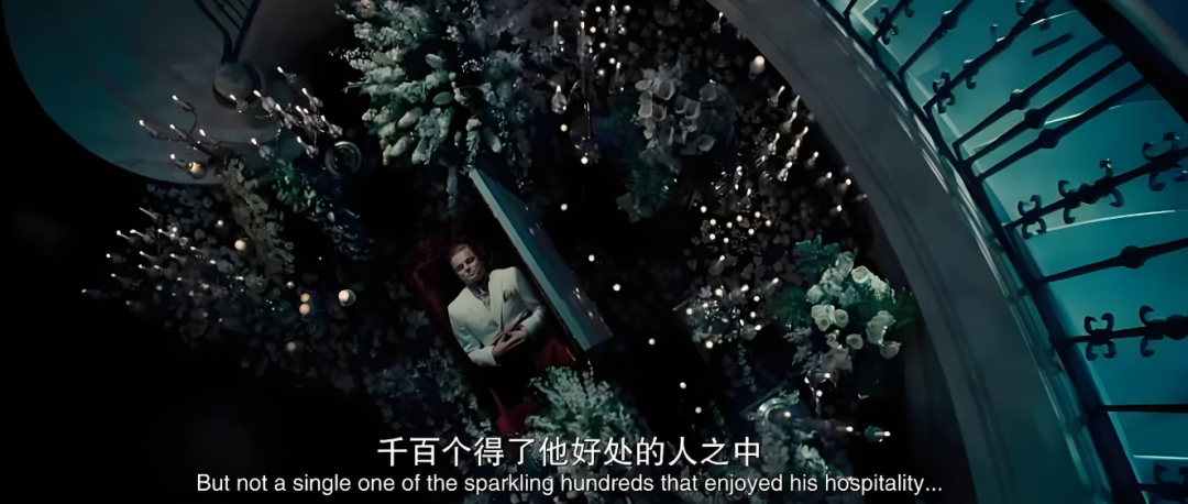 整部电影最令人难忘的除了拉娜·德雷深沉隽永的歌声,就是莱昂纳多扮演的盖茨比在漫天烟花中朝镜头微微招手的画面了。这部电影的出色,很大程度上是因为其原作就非常具有文学性。