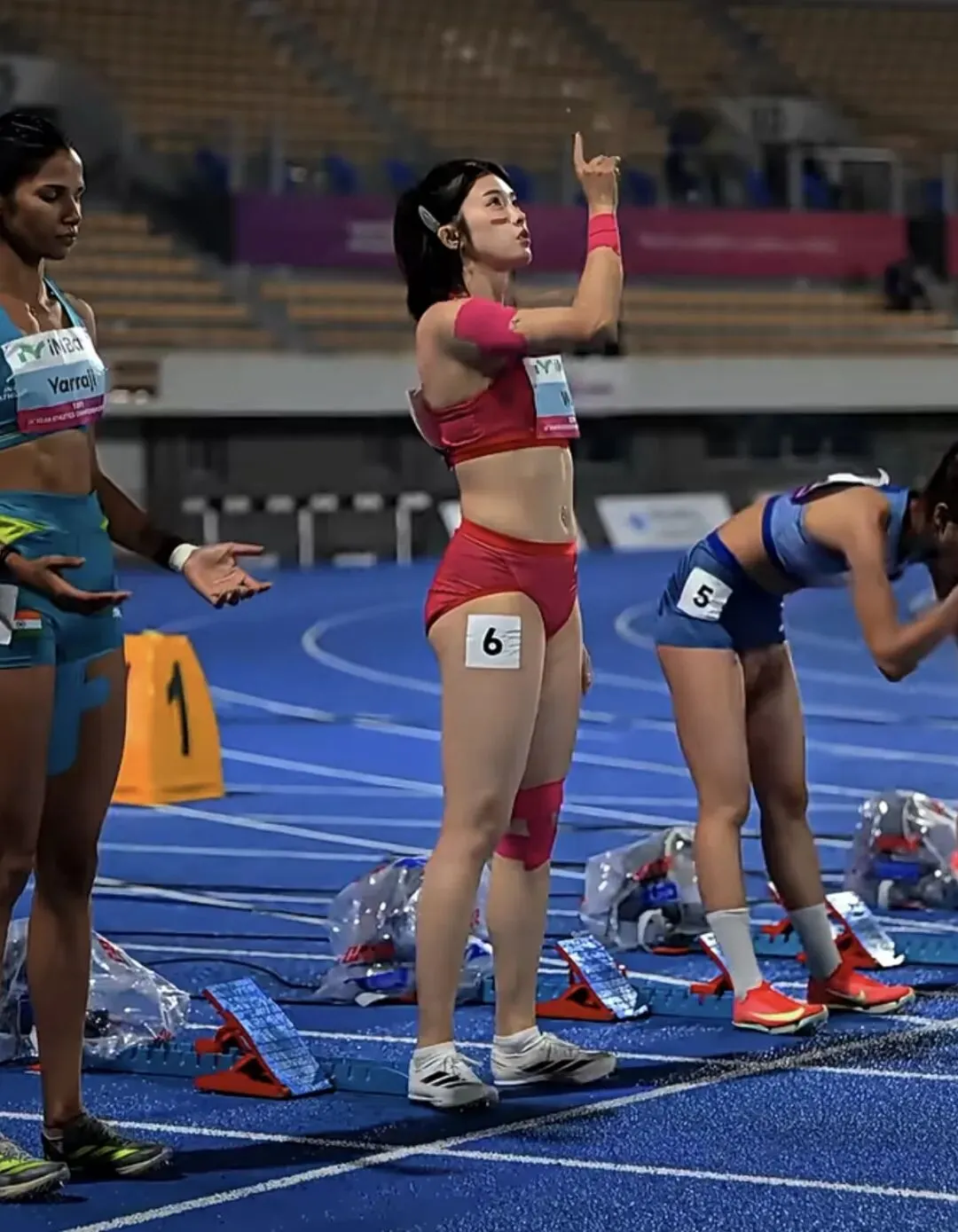 但是,她成为田径场上的显眼包不仅仅是因为实力,而是一系列的别出心裁的操作: