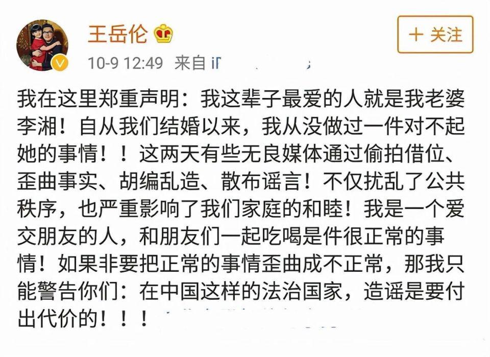 直到 2018 年,王岳伦的绯闻漫天飞,李湘罕见的在公开平台发火。
