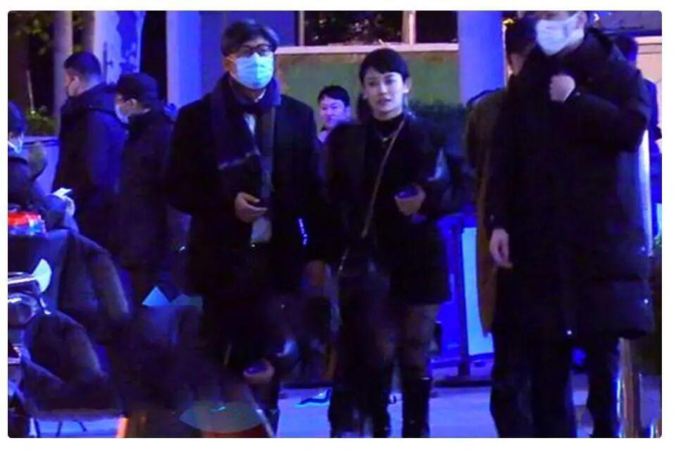 照片上,该女子年轻貌美,王岳伦跟在后面低头看手机。