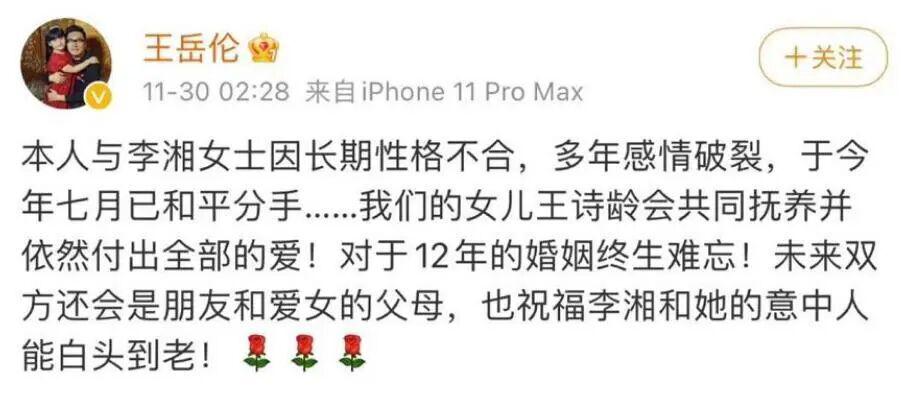 也是因此,王岳伦在深夜发文官宣离婚,还暗讽李湘移情别恋?