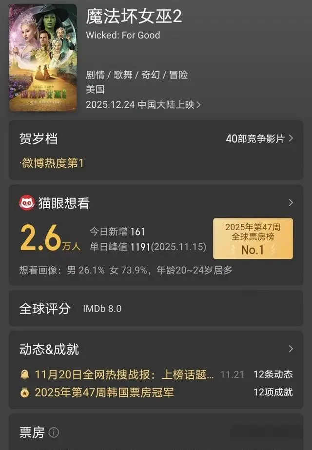 《哪吒2》的压力不小。《魔法坏女巫2》已经来了,后面还有《疯狂动物城2》和《阿凡达3》排着队。