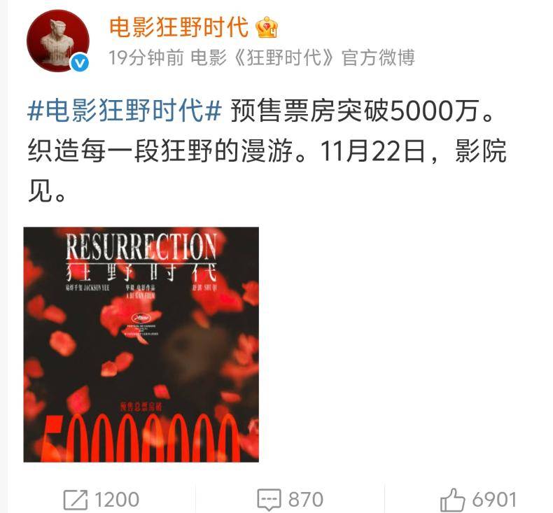 《狂野时代》身为一部文艺片,同样没有票房底盘,刚开票时预售也不太行,坊间出现过很多唱衰的声音。