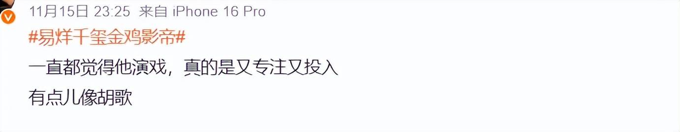 《狂野时代》的逆袭反衬得胡歌的境遇更尴尬,在不少网友的眼里,易烊千玺还没能达到胡歌的高度,但现在胡歌的流量已经逐渐退潮,反倒是易烊千玺还在鼎盛时期,隐隐有超过他的迹象。