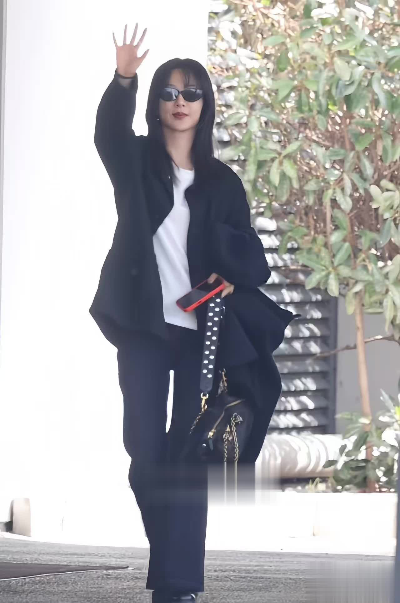 照片里她穿着一身黑衣白内搭,戴着棒球帽和墨镜,整体造型挺有气质的,但那张脸真的变化好大。
