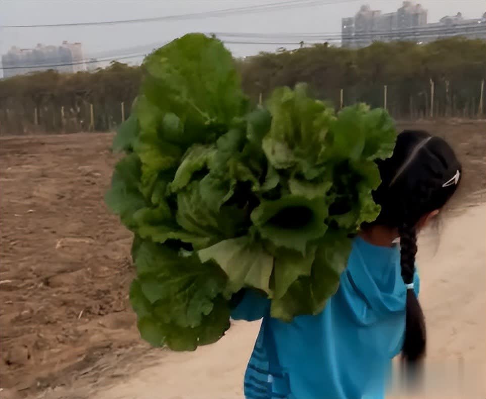 后来他们还去了白菜地,醒醒挖出了一大颗白菜,随后她扛到肩上,向爸爸分享喜悦。