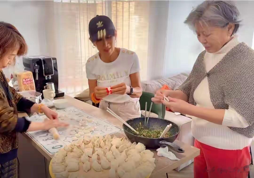 在视频里,她和好友一起包饺子,可是她和以往完全不一样。