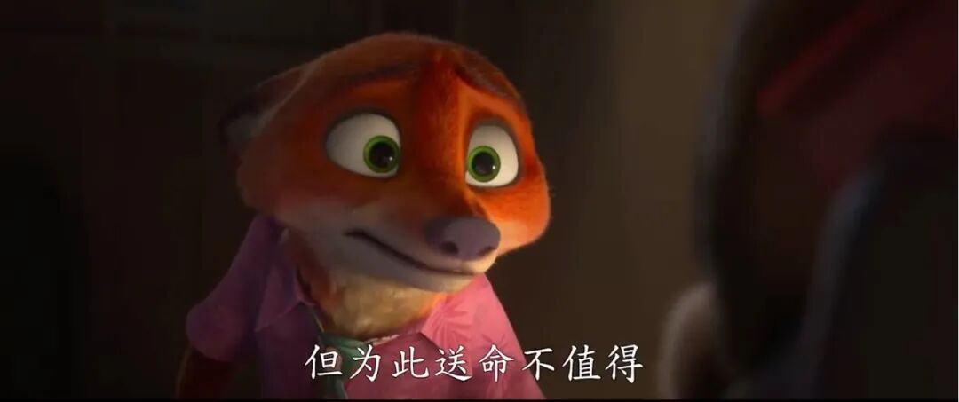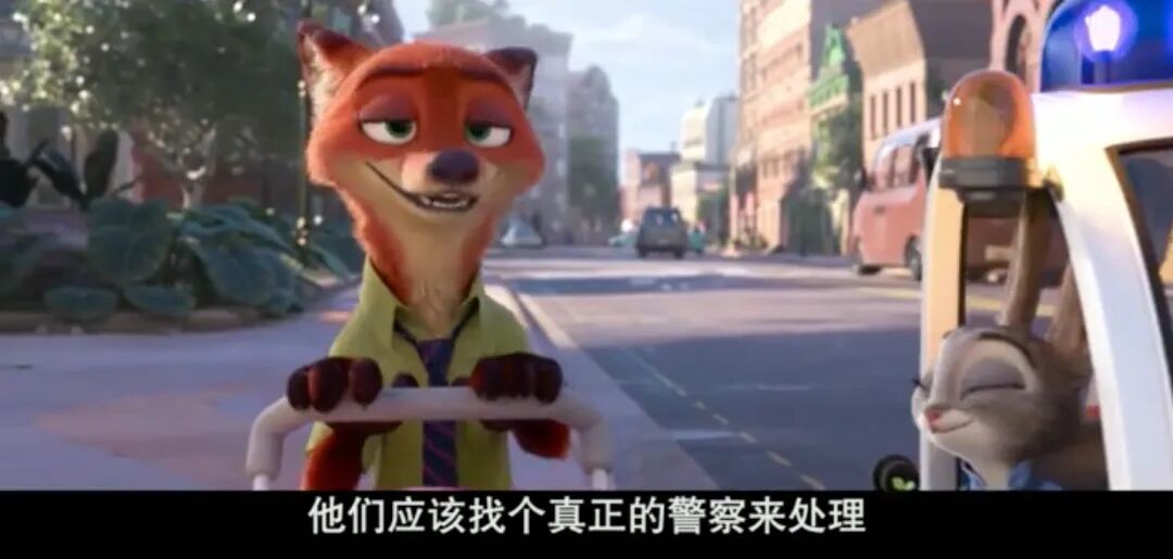 尼克因为童年创伤,习惯了独来独往,拒绝朱迪踏入他的私人领地,他用吊儿郎当的态度,轻佻的话术和“案子没有命重要”这种言不由衷的话,来隐藏自己的受伤和不安。