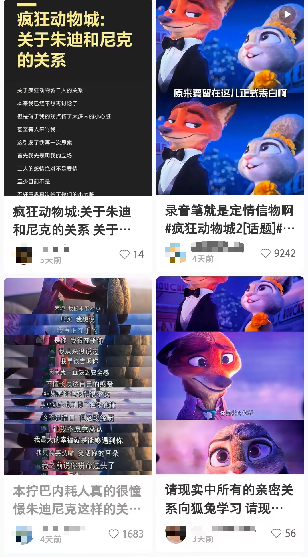 这些话放在《疯狂动物城2》本身,每一条都奏效。“剧本可以玩套路,但狐兔互动必须充满真诚”、“续集口碑可以有争议,但CP的KPI必须超标”。