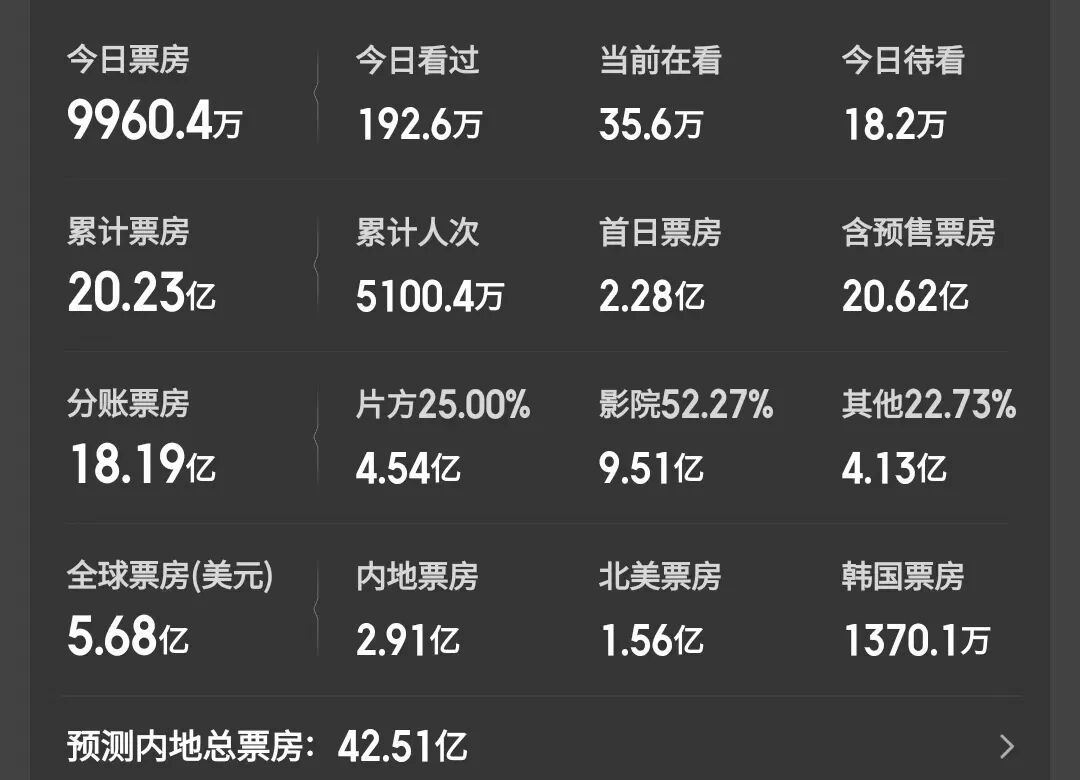 话题带动电影热度,也拉动了票房。自从上映以来,预估票房不断上涨,从首映前的25亿跳到42亿。