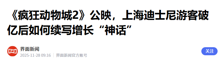 上海迪士尼游客数量也因此激增。作为全球首个且唯一的“疯狂动物城”主题园区,上迪这次占尽“天时地利”,早在11月初电影预告片发布期间,游客数就已经悄悄破了亿。