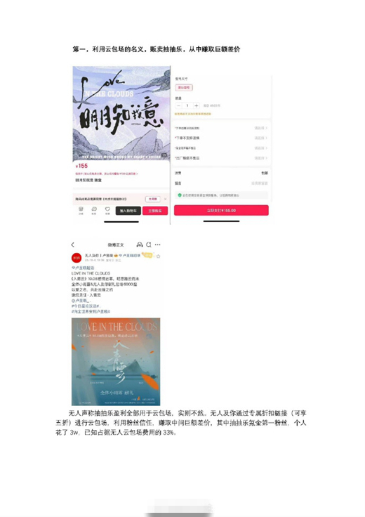 除了行程特权,“无人及你”还被指控利用这些特权进行牟利活动。在云包场项目中,她通过专属五折链接承包粉丝云包场项目,然后转手以全价售卖抽抽乐(抽奖礼包),从中赚取巨额差价。有一位单名粉丝为了支持偶像,在这上面氪金高达3万元,占其包场总费用的33%,这可不是一笔小数目。而且,“无人及你”还多次高价抢走其他站姐长期合作的修图师,甚至要求修图师违约转为自己服务,导致其他站子无法正常出图,严重影响了其他站姐的追星体验和正常运营。