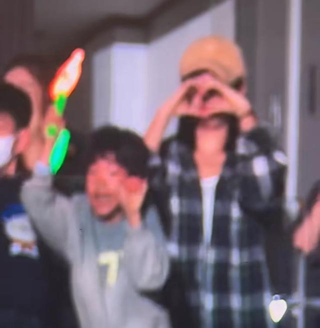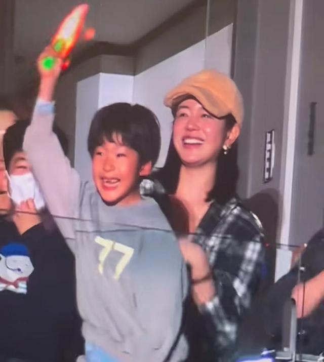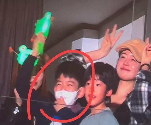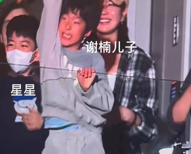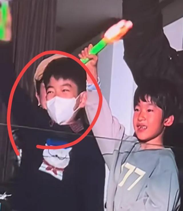 在吴虑旁边,穿着蓝色卡通图案毛衣的就是陈妍希和陈晓的儿子小星星,他戴着口罩,虽然也很激动,但更稳重一些。