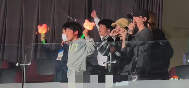 他们一行三人,分别带着儿子现身,他们都站在后排的看台上,陆虎向观众介绍他们的时候,他们也开心的和大家打招呼。