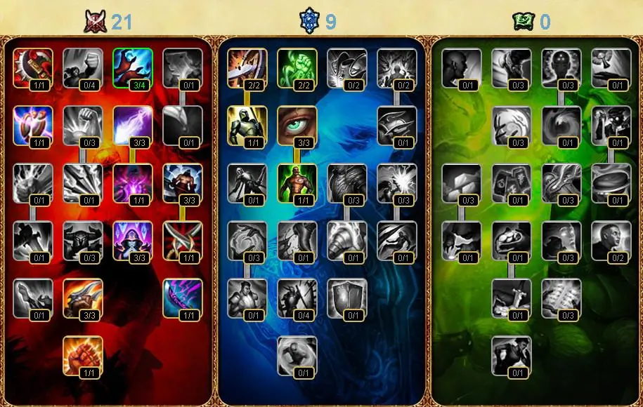 玩过S4赛季之前的老玩家都知道,当年LOL的天赋是没有一键配置的,所有的英雄天赋都需要自己点,而且加点的方式大部分都是21:9、18:12,当初英雄的天赋树系统,不知道是多少初入坑玩家的噩梦,有时特别喜欢的英雄,还需要配单独的天赋树,甚至这些技能点,也需要30级才能完全拥有
