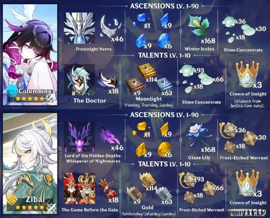 月之四版本,正好卡在海灯节。新角色已确定为哥伦比娅,兹白,四星角色叶洛亚。复刻角色推测有那维莱特、伊涅芙。比较有趣的是,每年都会复刻的年兽魈,已经不再复刻卡池中,这是更改一。