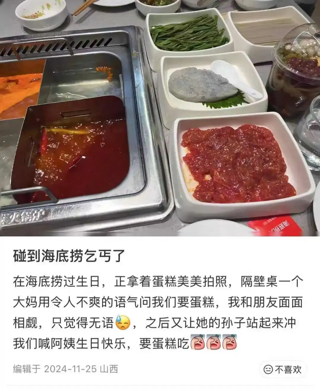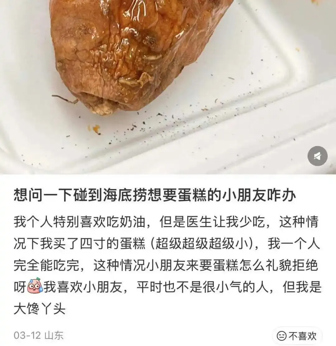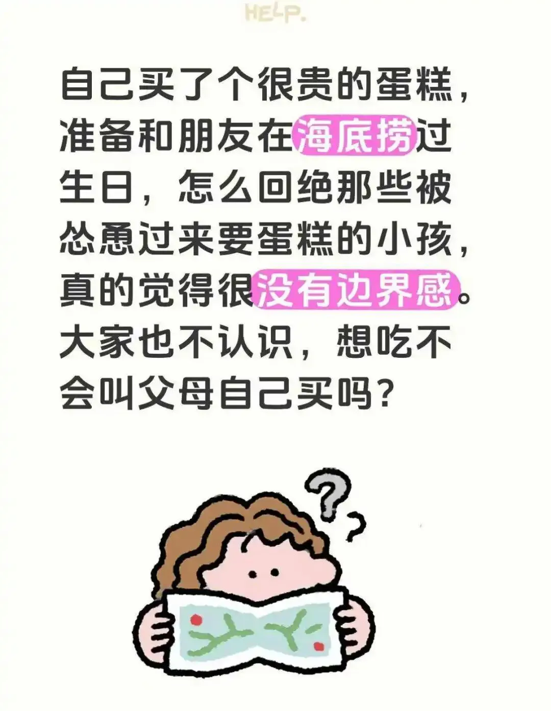 网友买了个很贵的蛋糕准备和朋友在海底捞庆祝,不知道怎么回绝要蛋糕的小孩。