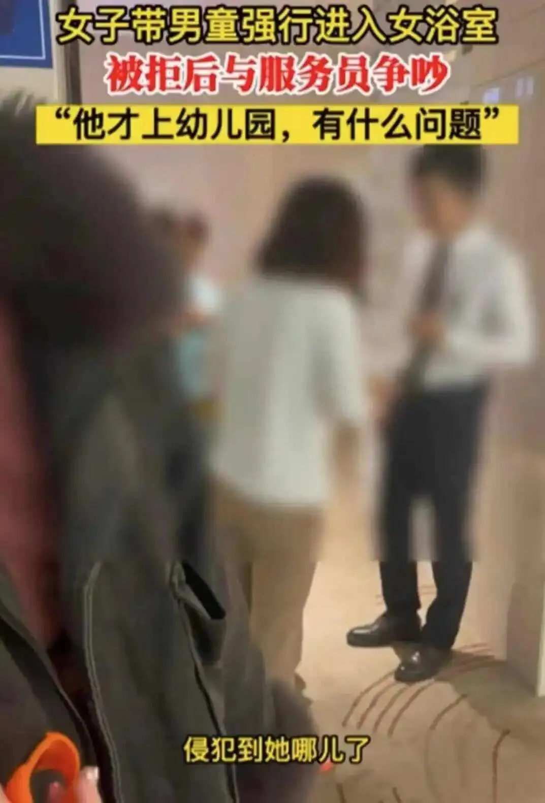 宝妈带着不大不小的男孩去女士公共澡堂洗澡。