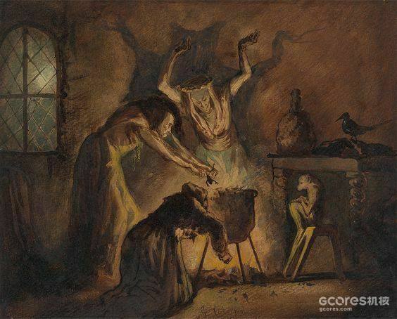 第一个女巫:我来了,灰马尔金! 第二个女巫:来吧帕多克。