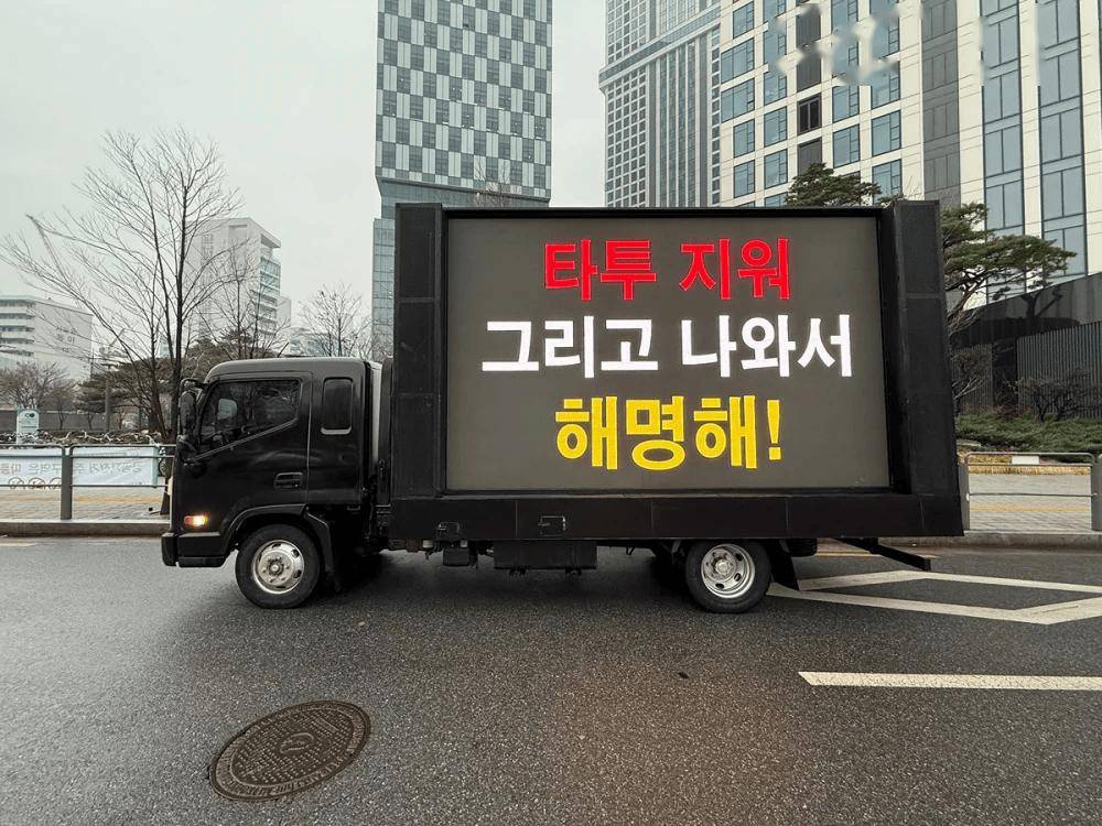 又见抗议卡车,这次轮到了aespa。近日,SM娱乐公司总部外被一批粉丝租赁的抗议卡车包围,醒目标语直指组合成员Winter,要求其“承担责任”、“清除纹身”,甚至喊出“若想恋爱就应以普通人金敏静身份生活,退出aespa”的激烈言论,将偶像与粉丝之间紧绷的关系再次置于聚光灯下。