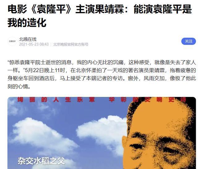 就在这个艰难的时期,电影《袁隆平》剧组向果靖霖发出邀请,希望他出演男主角。