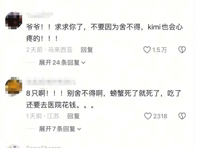 但网友们看了后却无比心疼乔爸爸,那些螃蟹是拍视频剩下的,老人家不想浪费食物,吃完了却感到不舒服。