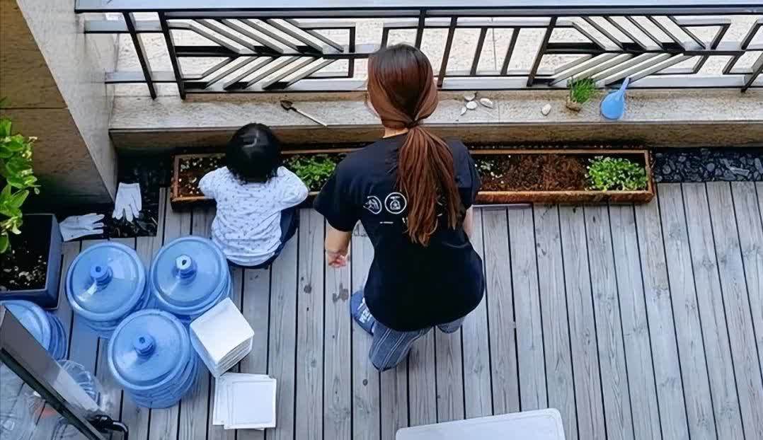孩子们也很喜欢这个小菜园,一有空,蔡少芬就带他们一起浇水、拔草。