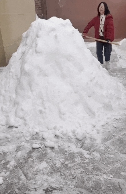 冬天,院子里的雪积得老厚,她就自己拿着铲子清雪,把雪堆成一个个小山包。