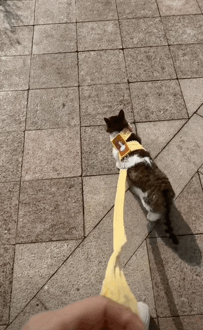 她的社交账号里,最多的内容就是带着猫在村里散步。