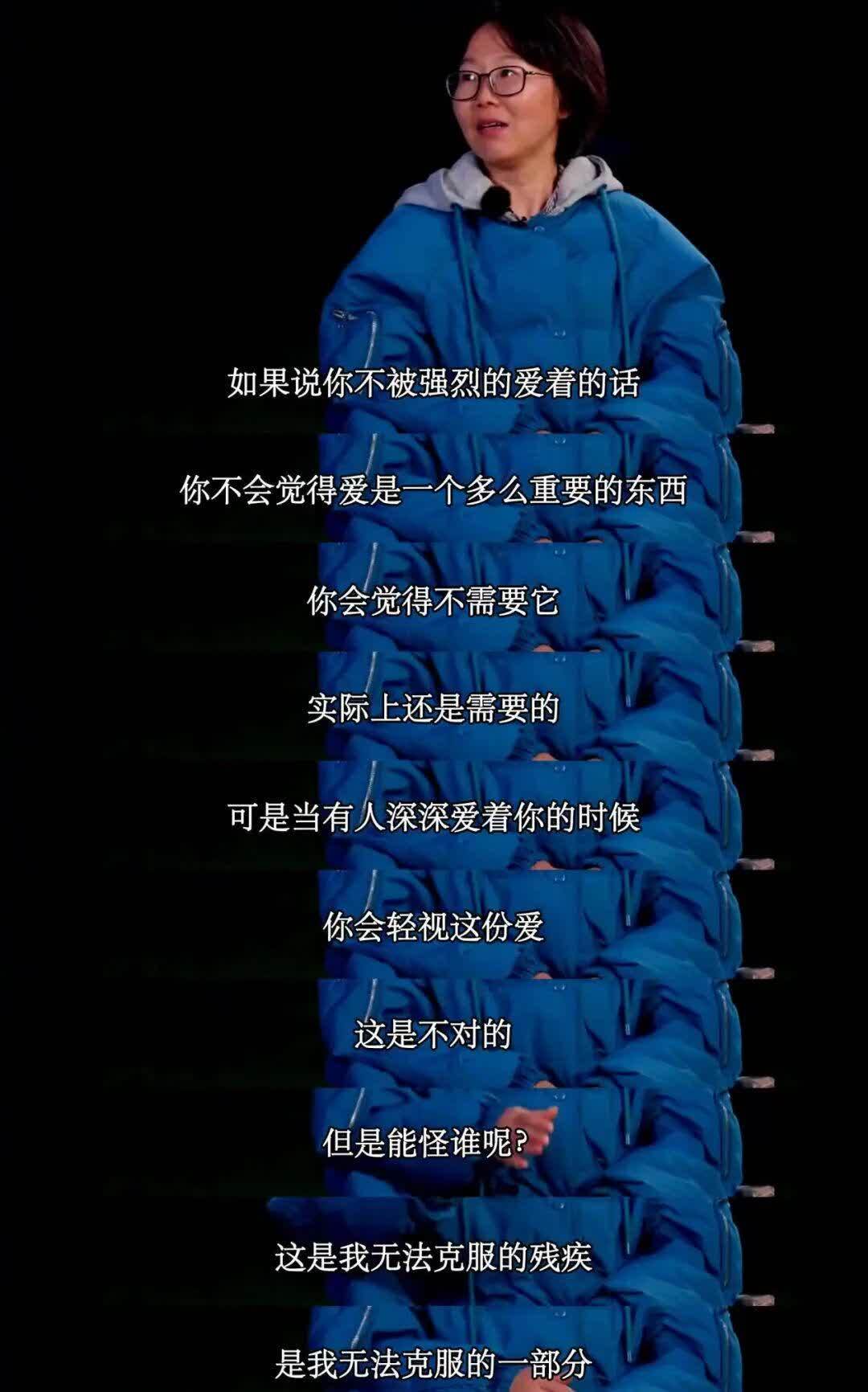 谈到“爱”,她坦言自己会轻视它,这是她难以克服的精神“残疾”: